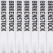 Three different types of paper divide the book into sections. The first section, featuring archival and historical documents, is printed on yellow-tinted, semi-transparent paper. The middle section, with a focus on photographs and advertisements, uses glossy, greyish paper. The final section is printed on bright white, glossy paper, similar to those used in fashion magazines and art catalogs. The blind-stamped cover is made of extra rough cardboard, featuring the first recorded mention of a Birkenstock shoemaker from 1774.