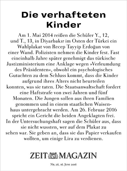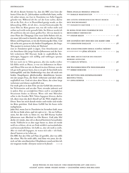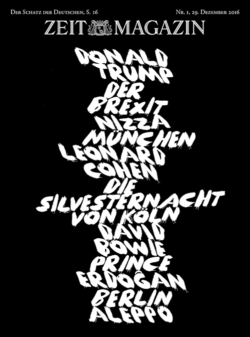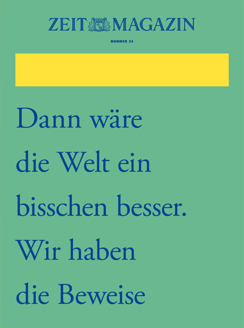 The multiple award-winning "ZEITmagazin" is a supplement to the weekly "Die ZEIT" — one of Germany’s largest and most prestigious newspapers. Commonly coined as general interest, the ZEITmagazin’s pages often dive into the nitty-gritty of politics, fashion, art, design, music, and literature. Since 2007 Mirko Borsche has held the position of Creative Director. Mirko’s tenure has been marked by unique and contemporary design, earning him accolades nationally as well as internationally — a success that he traces back to his strong team at ZEIT: "It has always been my goal to work on the design of a newspaper, but its the great trust and quality I receive from the editor-in-chiefs of both "Die ZEIT" and "ZEITmagazin" that make my work there so heartfelt."